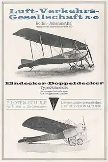 Luftverkehrsgesellschaft m.b.H. (L.V.G. or LVG) was a German aircraft manufacturer based in Berlin-Johannisthal, which began constructing aircraft in 1912, building Farman-type aircraft. The company constructed many reconnaissance and light bomber biplanes during World War I.