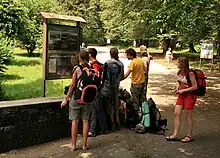 The bulk of the strict nature reserve is accessible only for research purposes; the managed nature reserve contains tourist facilities including five trails: to Grouse Waterfall, to Ninoskhevi Waterfall, to the 11th-century Machi (or Machistsikhe) Castle,[4] to Black Rock Lake and knowledge of nature trail; the Black Rock Route also crosses the strict nature reserve.[5] An agreement between Azerbaijan and Georgia allows hikers to cross the border freely to and from the reserve.[8]