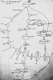 The lake first appeared on a map drawn by Peter Pond in 1785 and was described as the "Middle Road to Hudson's Bay".[20] The name of the lake was first noted In 1806, when explorer and surveyor Peter Fidler recorded the main waterways of his Cree partners in the notable "Cha Chay Pay Way Ti’s Map of the Waterways of a Part of Northern Manitoba", Cranberry Portage and Lake Athapapuskow are clearly marked on it.[21] In 1896 J.B. Tyrell surveyed a portion of the south shore,[22] but due to its remoteness, the lake was not fully mapped until 1914 when the Geological Survey of Canada sent Everend Bruce to do so in 1914.[23]