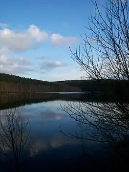 Lake Ry de Rome is an artificial lake near the city of Couvin, Wallonia, in Belgium near the border of France. The lake is located in the Ardennes. The water volume is 2,200,000 m³ and the area is 0.25 km2.