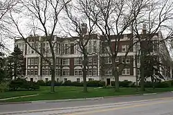 Lake Shore Apartments is a historic apartment building at 470-498 Sheridan Road in Evanston, Illinois. The three-story building was built in 1927. Its location was chosen to provide views of Lake Michigan and relative distance from Evanston's busier commercial areas; to compensate for this, the owners provided residents with transportation to local schools and public transit stations. Architect Roy F. France, who also designed several other Evanston apartment buildings, designed the building in the Georgian Revival style. The building features a brick exterior with terra cotta detailing, projecting bays and bow windows, and an arcade leading to a private courtyard.[2][3]