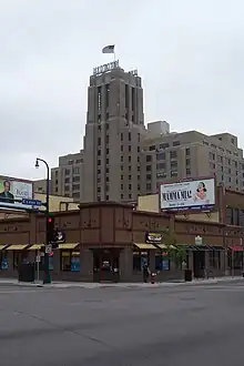 While originally developed around the Selby-Lake streetcar, Lake Street became a heavily automobile oriented corridor, especially after the removal of streetcars in the 1950s. Lake Street and University Avenue were two of the most auto-oriented corridors in the Twin Cities. Poet John Berryman referred to Lake Street in a poem as, "Lake Street where the used cars live".[3] In 1977, the construction of a Kmart closed off Nicollet Avenue at Lake Street and combined two city blocks.[4]