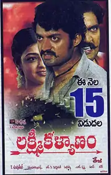 Lakshmi Kalyanam is a 2007 Indian Telugu-language romantic action film directed by Teja. Nandamuri Kalyan Ram and Kajal Aggarwal played the lead roles. The film was released on 15 February 2007 and was declared an Average at the box office.[1] The film was dubbed into Hindi as Meri Saugandh (2011) and into Tamil as Machakaalai. This film was Kajal's Telugu cinema and lead debut.
