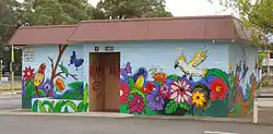 This public convenience adjacent to Lalor Park shopping centre, has been decorated under a council sponsored public art program