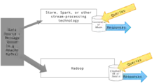 For running analytics on its advertising data warehouse, Yahoo has taken a similar approach, also using Apache Storm, Apache Hadoop, and Druid.[11]:9,16