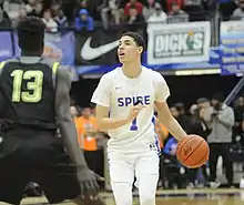 On November 5, 2018, after skipping his junior year and a part of his senior year to play professionally, Ball joined SPIRE Institute and Academy, a prep school in Geneva, Ohio, where he played under head coach Jermaine Jackson.[29][30] SPIRE competed outside the jurisdiction of the Ohio High School Athletic Association, allowing Ball to play without concerns over his amateur status.[31] A number of prominent high school teams canceled their match-ups with SPIRE because Ball's professional experience would threaten their eligibility under their state federations.[32] His team was removed from the Hoophall Classic tournament because event organizers did not meet a $10,000 request from a Ball family associate in order for Ball to play.[33] On November 10, 2018, Ball debuted for SPIRE, recording 20 points, 13 assists and five rebounds in a 96–84 win over The Hill School.[34] Ball helped his team reach the final and was named season MVP.[35] He was ruled ineligible for the 2019 McDonald's All-American Game due to his professional experience.[36]