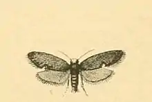The wingspan is 13–19 mm. Adults are on wing in July.[2]
