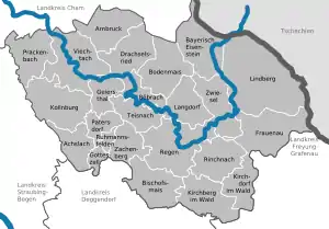The district is entirely located in the Bavarian Forest. It is named after the Regen river and its two headstreams, the Black Regen and the White Regen.