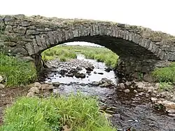 The head waters of the Annick Water are comparatively shallow and, even in winter, a ford might have sufficed. Blacklaw farm tenants are shown to have had fields here as indicated by the field boundaries marked on Roy's map of 1747[8] and a track leads up on to Glenouther Moor[2] where the common grazings were located and peats may have been dug. The same map shows a sheep ree on a field boundary, used as a permanent stone sheep-pen where sheep could be confined during poor weather, for shearing, etc.