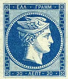 The first type of the Greek stamp is named "large Hermes head" in order to differentiate it from the following one, issued in 1886, and named "small Hermes head".[13]