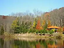 • Chinese Friendship Pavilion and Cultural Garden (1.6 ha / 4 acres) - a pavilion given by Westchester's Sister City, Jingzhou in the People's Republic of China, within a young Chinese-style garden with plantings including bamboo and Kousa dogwood, pond, and a stone dust pathway.