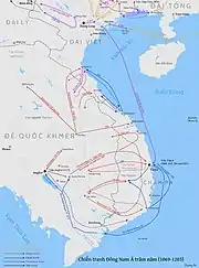 Tensions between the Lý and Song increased during the reign of Lý Nhân Tông (1072–1128), whose military seized Qinzhou, Lianzhou, and Yongzhou along the Lý-Song border after his attack on Champa.[2] In 1075, Song prime minister Wang Anshi informed the Song emperor of the decline in the Lý's power following its defeat by the Champa, prompting the Lý-Song War during which the Song launched a failed invasion.[2] The conflict ended after Lý Nhân Tông sought reconciliation following Lý military successes.[2]