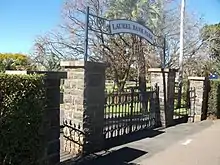 To memorialise this generous donation to the city, commemoration gates were erected by the Council at the entrance to Laurel Bank Park in 1934. They consisted of locally quarried bluestone pillars with decorative wrought-iron gates and two commemorative plaques. The official dedication ceremony was held in June 1934 and was attended by the Mayor, James Douglas Annand, and his wife. Stephens also attended and stated that "Laurel [Bank] Park was given to the people of Toowoomba for their benefit for ever".[29][1]