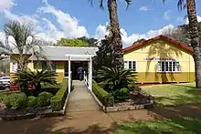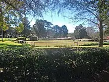 Following agreements with Stephens and the council, the Laurel Bank Croquet Club was formed in 1934 and was the third croquet club in Toowoomba; the two earlier clubs were Toowoomba and Toowoomba West.[32] It was agreed that a portion of Laurel Bank Park would be dedicated for two croquet lawns and a clubhouse. Fundraising for the club began almost immediately with garden parties and fetes held in the park. Two lawns were laid by March 1935 and timber benches installed.[33] Much of the work was undertaken as Depression-era relief work, provided by the council.[34][35][36] The official opening ceremony in March 1935 was attended by Stephens, who was given the honour of striking the first ball, and stated that he hoped "the members would have much happiness and pleasure in using them". When first opened, the club had twenty-six members.[37][32][1]