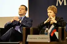 Parisot with Russian President Dmitry Medvedev whilst the latter was in Paris on a state visit on 2 March 2010.