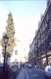 The street has had a number of names.[3] It was known as Dewy's Lane in the 13th century, after a family who lived there. Its name was Somenor's Lane in 1385. For a time the street was known by the name of Lawrence Hall, which was on the south side of the street, 30–40 yards from Turl Street.[4] The name of "Ship Street" was used from about 1762, after an alehouse in the street. At one time, there was a sheep market in the street and its name is a possible corruption of this. The street used to be much longer than it is today, running east through Catte Street to the city wall at Eastgate.
