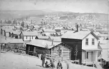 The Leadville area was first settled in 1859 when placer gold was discovered by A. G. Kelley in California Gulch, and by Abe Lee in April (25/26) 1860,[12] during the Pikes Peak Gold Rush.[13][14] Prospectors panned for gold in the stream that ran through California Gulch in what became the town of Oro City (oro is the Spanish word for gold).[14] Horace Tabor, who became known as the "Leadville Silver King", and his wife Augusta were among the first prospectors to arrive in Oro City. Horace was appointed as the postmaster of Oro City on November 30, 1868.[15] His wife made money as postmistress, banker, cook, and laundress while Tabor was a prospector.[16]