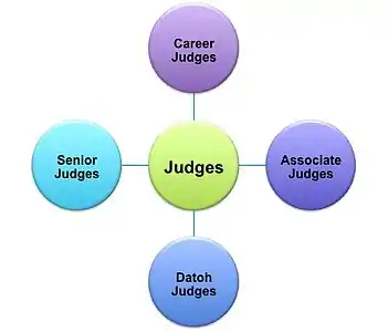 There are four types of judges in the Thai system – career judges, senior judges, associate judges and Datoh justices.[31]