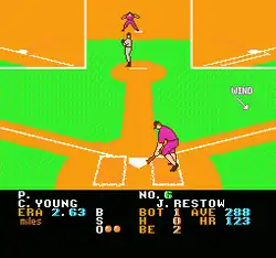 The player controls the pitcher from a viewpoint behind the batter, rather than from behind the pitcher, as in some baseball simulations. The player can throw three different pitches. The pitching coach interjects if the player underperforms; this feature is absent from most baseball simulations of the 1980s and 1990s.