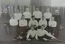 Formed in 1884 by a group of old boys of Wyggeston School as "Leicester Fosse", the club joined The Football Association (FA) in 1890.[7] Before moving to Filbert Street in 1891, the club played at five different grounds, including Victoria Park south-east of the city centre and the Belgrave Road Cycle and Cricket Ground.[8] The club also joined the Midland League in 1891, and were elected to Division Two of the Football League in 1894 after finishing second. Leicester's first-ever Football League game was a 4–3 defeat at Grimsby Town, with a first League win the following week, against Rotherham United at Filbert Street. The same season also saw the team's largest win to date, a 13–0 victory over Notts Olympic in an FA Cup qualifying game.[2] In 1907–08 the club finished as Second Division runners-up, gaining promotion to the First Division, the highest level of English football. However, the club was relegated after a single season which included the team's record defeat, a 12–0 loss against Nottingham Forest.[2][9]