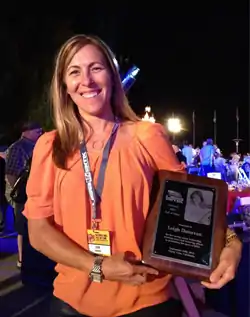 In 2010, at 38 years of age, a mother of a 5 year old, retail business owner (Tangerine boutique in Temecula, Ca.) and 9 years after retiring from professional racing, Donovan decided to try to make the U.S. National Downhill team. She competed at a few qualifier events and took 4th place at the USA CYCLING National Championships, qualifying her for the UCI World Championships at Mont St. Anne Quebec Canada. Leigh finished 8th place in the finals, was the highest placed American and oldest competitor in the race, Donovan and her daughter carried the flag out at the opening ceremonies. Leigh and her daughter Grace carry the U.S. Flag at opening ceremonies