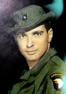 Sabo was drafted into the United States Army in April 1969 and sent to Fort Benning, Georgia, for basic combat training. While on leave he married Rose Sabo-Brown (née Buccelli), the daughter of a World War II veteran and Silver Star Medal recipient, whom he had met in 1967.[4] He attended advanced individual training in September and October of that year, followed by a honeymoon trip to New York City.[2] Sabo was assigned to Bravo Company of the 3rd Battalion, 506th Infantry Regiment, U.S. 101st Airborne Division,[1][3] and was known to enjoy his time in the military, preferring the environment of discipline and camaraderie.[2]