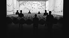 In 2018, Songulashvili’s monumental stage installation "IDEM ET IDEM" was presented for composer Giya Kancheli’s historical concert with the world premiere of his latest musical piece for choir and chamber orchestra. Inspired by one of Songulashvili’s painting series the composer entitled his work with the same name.[7]