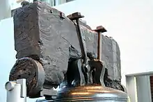 The analysis concluded that, on the second recasting, instead of adding pure tin to the bell metal, Pass and Stow added cheap pewter with a high lead content, and incompletely mixed the new metal into the mold.[17] The result was "an extremely brittle alloy which not only caused the Bell to fail in service but made it easy for early souvenir collectors to knock off substantial trophies from the rim".[18]