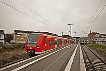 When the Rhein-Niers-Bahn from Aachen reached Lindern, one portion continues to run via Mönchengladbach to Essen, while the other reverses and runs from Lindern to Heinsberg.[16][17] The infrastructure of the Heinsberg Railway is operated by Rurtalbahn. The line operation is operated by DB Regio NRW using Class 425 sets.[17] Coming from Heinsberg, this portion is reconnected in Lindern to the portion from Mönchengladbach and then the train continues to Aachen.