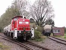 For the operation of the Chemiepark Oberbuch, the locomotive by the Chemiepark hauled freight wagons to Oberbruch station, where they were taken over by a DB locomotive operated by DB Schenker Rail (now DB Cargo).