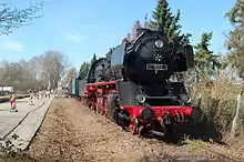 The first new reconstruction took place with a view to the upcoming reactivation in February 2010.[10] Hans Joachim Sistenich, then managing director of Aachener Verkehrsverbund (Aachen public transport) and the Zweckverband Nahverkehr Rheinland (Rhineland local transport), explained on 9 March 2010 in the Heinsberg District Office that he had the goal to restore rail services towards Heinsberg from December 2012, initially on part of the line. The financing and all contractual questions were clarified.[11] WestEnergie und Verkehr GmbH (the district-owned utility company) was named as the owner of the rail infrastructure and Rurtalbahn GmbH as the operator of the infrastructure. In addition, the line would be electrified. With effect from 31 December 2010, the ownership of the line passed from DB Netz to WestEnergie und Verkehr, which purchased the line in order to lease it to Rurtalbahn.[12] In the list of railway infrastructure companies of the Federal Railway Authority (Eisenbahn-Bundesamt), the railway infrastructure company responsible for the line is listed as Rurtalbahn GmbH.