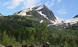 Lingon Mountain is a 4,098-foot (1,249 m) elevation mountain summit located in the Chugach Mountains, in Anchorage Municipality in the U.S. state of Alaska. The peak is situated in Chugach National Forest, between the Glacier Creek and Twentymile River valleys, 36 mi (58 km) southeast of downtown Anchorage, and 5 mi (8 km) east of the Alyeska Resort and Girdwood areas. Precipitation runoff from the peak drains into Turnagain Arm. This mountain's unofficial name refers to the lingonberry. Other berry-theme peaks nearby include Highbush Peak, Lowbush Peak, Nagoon Mountain, Blueberry Hill, and Bearberry Point.[1]