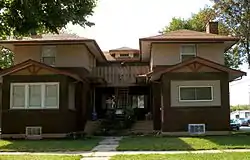 The Lippert House is a historic building located in Mason City, Iowa, United States. Built in 1923, this two-story duplex is significant for its C-shaped plan and strong Prairie School influences.[2] It features brick on the first floor, stucco on the second, wide eaves, broad hip roof, and a common utility wall. The house was listed on the National Register of Historic Places in 1980.[1]