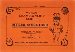The Tigers finally won their first World Series, defeating the Chicago Cubs, 4–2. Game 6 concluded with Goslin's dramatic walk-off RBI single, scoring Cochrane for a 4–3 victory.[70]