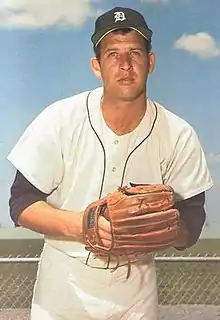 Bobo Newsom was the ace of the Tiger pitching staff in 1940, going 21–5 with a 2.83 ERA.[96] An unlikely hero on the mound this season was 30-year-old rookie Floyd Giebell. Making just his third major league start on September 27, Giebell was called upon to pitch the pennant-clinching game against Bob Feller of the Indians. Feller surrendered just three hits, one being a 2-run homer by Rudy York, while Giebell blanked the Tribe for a 2–0 victory.[97][98]