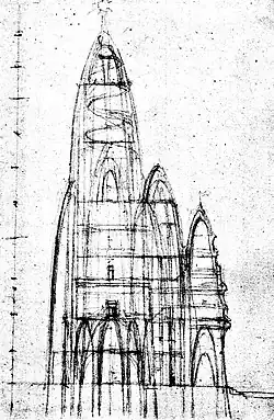 As an architecture student at the Escola Tècnica Superior d'Arquitectura in Barcelona from 1873 to 1877, Gaudí achieved only mediocre grades, but he did well in his "trial drawings and projects."[1] After five years of work and schooling, Gaudi qualified as an architect in 1878.