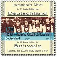After World War II and the team's reinstatement into FIFA, the German Football Association (DFB) was in charge of football in the Federal Republic and West Berlin. During this period, the team was commonly referred to as West Germany. The team played its first post-war international on 22 November 1950 against Switzerland.[18] Only four players selected before the war were capped for the nation afterwards: Herbert Burdenski, Andreas Kupfer, Jakob Streitle and Fritz Walter. Due to the break-up of Germany, two breakaway national teams were formed: Saarland (in 1950) and East Germany (in 1952).[19] Franz Immig of Saarland was the only player in either team to have been previously capped for Germany.[20] Saarland played their final match in 1956, after which control of the Saar Protectorate was given to West Germany. Three of the Saar team's players later represented Germany: Karl Ringel, Gerhard Siedl and Heinz Vollmar. Upon Germany's reunification in 1990,[21] the East Germany.. team was reintegrated into the Germany national team.[19] Eight players capped for East Germany later appeared for the reunified team: Thomas Doll, Ulf Kirsten, Olaf Marschall, Matthias Sammer, Heiko Scholz, Dirk Schuster, Andreas Thom, Dariusz Wosz.[22]