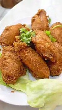 Meat dish | Chicken wings fried in a batter with fermented shrimp paste. |