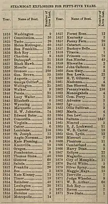 Steamboat boiler explosions were a common cause of 19th-century mass-casualty events in the United States