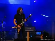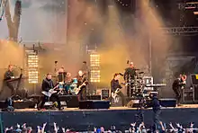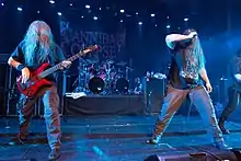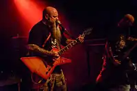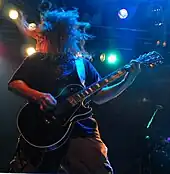 Stoner rock or stoner metal is typically slow-to-mid tempo, low-tuned, and bass-heavy.[102] It combines elements of psychedelic rock, blues rock and doom metal, often with melodic vocals and 'retro' production.[103] The genre emerged during the early 1990s, and was pioneered foremost by the Californian bands Kyuss[104] and Sleep.[105] Other prominent stoner metal bands include Acid King and Electric Wizard.
