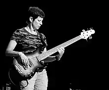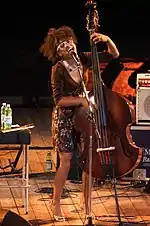 Esperanza Spalding alternates between double bass and bass guitar in her performances.
