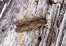 Lithophane semibrunnea, the tawny pinion, is a moth of the Noctuoidea family. It is found in scattered populations in North Africa, central and southern Europe and Asia Minor.