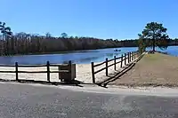 Little Ocmulgee State Park & Lodge is a 1,360-acre (550 ha) Georgia state park located 2 miles (3.2 km) north of McRae-Helena on the Little Ocmulgee River. Part of the park was initially built by the Civilian Conservation Corps during the Great Depression, around the natural diversion of the Little Ocmulgee into a lake. This is a 256-acre (104 ha) lake with beach, and the park includes a 60 room lodge and a championship 18-hole golf course with pro shop, known as the Wallace Adams Memorial Golf Course.[1] The soil around the Ocmulgee River and the Little Ocmulgee is a fine white sand, and therefore the lake has its own "beach sand". Also within the park is the 2.6-mile (4.2 km) long Oak Ridge Trail, allowing visitors to see native wildlife and plants.