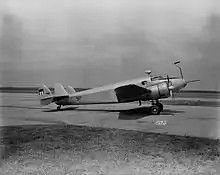 Three other Lockheed 12s were used to test tricycle landing gear.[19] These had their normal landing gear replaced by a non-retracting version with a large nosewheel and with the main wheels shifted further back on the engine nacelles.[19] (The tailwheel from the normal conventional gear was retained.[19]) The gear was non-retractable because there wasn't room within the structure to stow it in retracted position.[13] Streamlined fairings were placed on the gear to reduce drag. One of the tricycle gear Lockheed 12s went to the U.S. Navy as the XJO-3 and performed carrier landing tests on the USS Lexington to study the suitability of a twin-engined tricycle-gear aircraft for carrier operations.[18][19] Another went to the U.S. Army as the C-40B, and still another was retained by Lockheed for its own testing; both of these were eventually converted back to the normal landing gear configuration.[18][19]