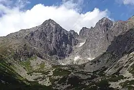 ![]() Lomnický štít (left) and Kežmarský štít (2558 m) | |