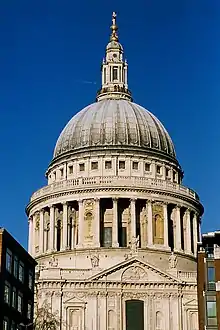 The Great Fire of London broke out in 1666 in Pudding Lane in the city and quickly swept through the wooden buildings.[69] Rebuilding took over ten years and was supervised by polymath Robert Hooke.[70] In 1708 Christopher Wren's masterpiece, St Paul's Cathedral, was completed. During the Georgian era, new districts such as Mayfair were formed in the west; new bridges over the Thames encouraged development in South London. In the east, the Port of London expanded downstream. London's development as an international financial centre matured for much of the 18th century.[71]