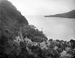 Nutmeg is grown on the island and trade brought the inhabitants great wealth in the premodern period. Until the early 17th century, the Banda Islands were ruled by locals magnates called the Orang Kaya. The Portuguese were the first Europeans to attempt to dominate the spice trade from the 16th century, but were replaced by the Dutch. Initially, the Dutch established friendly relations and a trading outpost in 1599,[1] but in 1609 the Orang Kaya on Banda Neira rebelled against Dutch attempts to coerce a monopoly on the spice trade, killing 30 Netherlanders.[2] This resulted in a brutal campaign against the people of Banda Islands by the Dutch including two punitive military expeditions in early 1611 against Lontor led by Piet Hein. The Dutch conquest of the Banda Islands cumulated with the Banda Massacre of 1621, in which Jan Pieterszoon Coen, with a fleet of 19 ships, 1,655 European troops and 286 Asian auxiliaries, invaded the islands and subsequently began a campaign to commit genocide against the local inhabitants.[3] According to Coen's own account, "about 2,500" inhabitants died "of hunger and misery or by the sword", "a good party of woman and children" were taken, and not more than 300 escaped.[4] Straver (2018) concluded that the Lontorese population would have been around 4,500–5,000 people, 50 to 100 of whom died during the fighting, 1,700 of whom were enslaved and 2,500 of whom died due to famine and disease, while an unknown number of natives jumped to their deaths from the cliffs; several hundreds escaped to nearby islands such as the Kei Islands and eastern Seram.