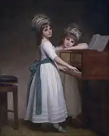 Thurlow had a number of illegitimate children[4] Two of his daughters, Maria and Catharine, had their portrait painted by George Romney in 1783. Maria, who died in 1816, married Colonel Sir David Cunynghame of Milncraig, 5th Baronet, in 1801, and had several children.[5] Catharine, who died in 1826, married Alexander Fraser, 17th Lord Saltoun, in 1815.[6]