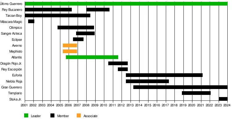 Members | Último Guerrero (leader) Gran Guerrero Stuka Jr. |