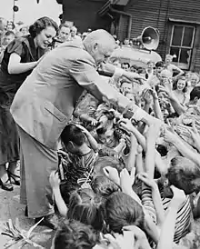 St. Laurent shaking hands with supporters during the 1949 election campaign